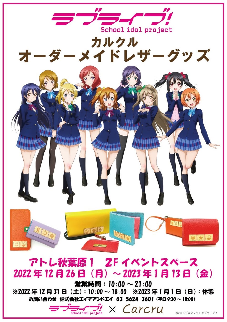 株式会社エイチアンドエイが運営する革小物ブランドcarcru(カルクル)は、「ラブライブ!」とのコラボ企画、オーダーメイドレザーグッズのご注文受付をアトレ秋葉原1 2F特設会場にて開催いたします。