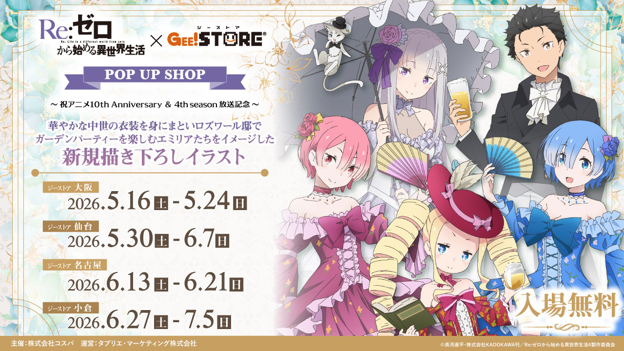 4/16(목)~개최! 《Re:제로부터 시작하는 이세계 생활×아틀레 아키하바라 POP UP SHOP~축 애니메이션 10th Anniversary & 4th season 방송 기념~》